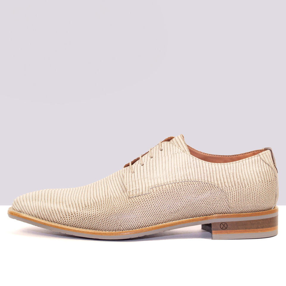 Deze nieuwe versie van Jurassic uit hoogwaardig geprint leder is de ideale zomerse veterschoen. Door de lichte stiksels aan de rand van de zool past deze veterschoen moeiteloos bij zowel formele als casual looks.