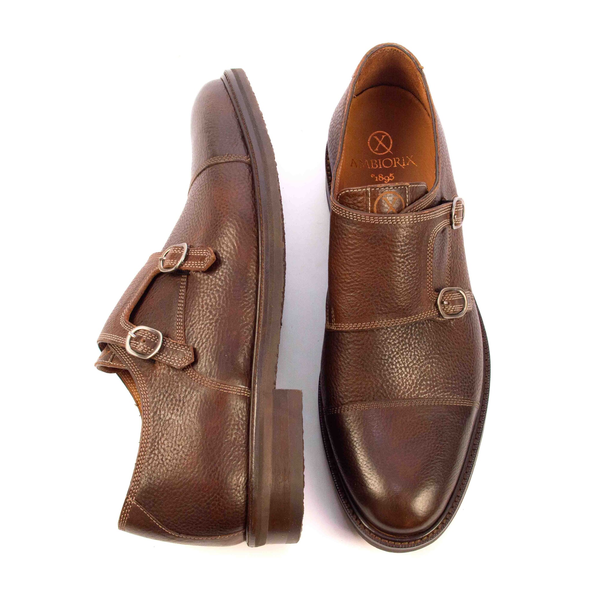 Materiaal: bruin lederUitneembaar voetbed: JaZool: rubberMaakwijze: blakeLeest: 126