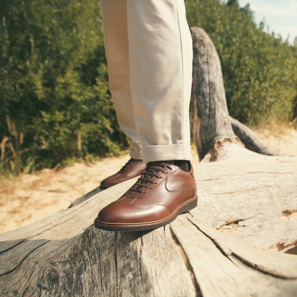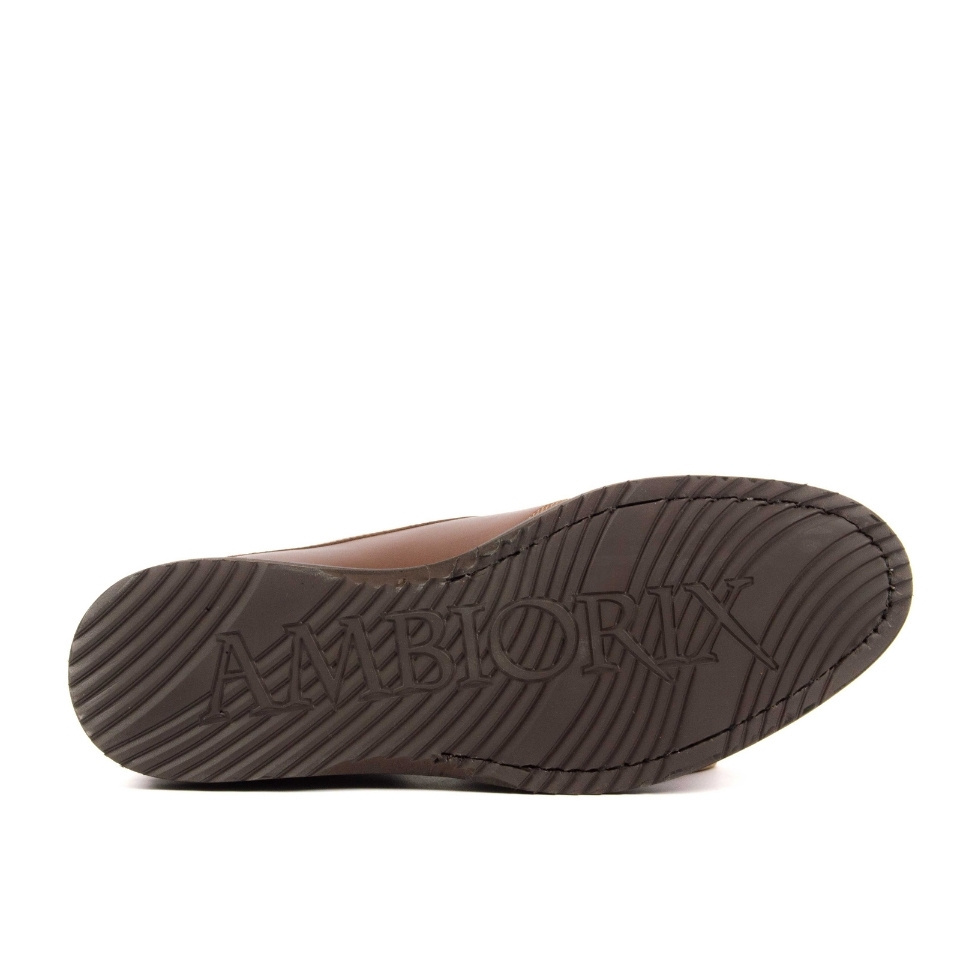 Materiaal: bruin kalfslederUitneembaar voetbed: jaZool: rubberMaakwijze: blakeLeest: 2468