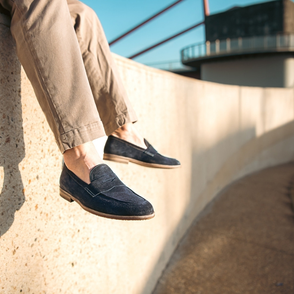 Materiaal: Suede senso sky blueUitneembaar voetbed: NeeZool: Rubber Maakwijze: Blake Leest: 853
